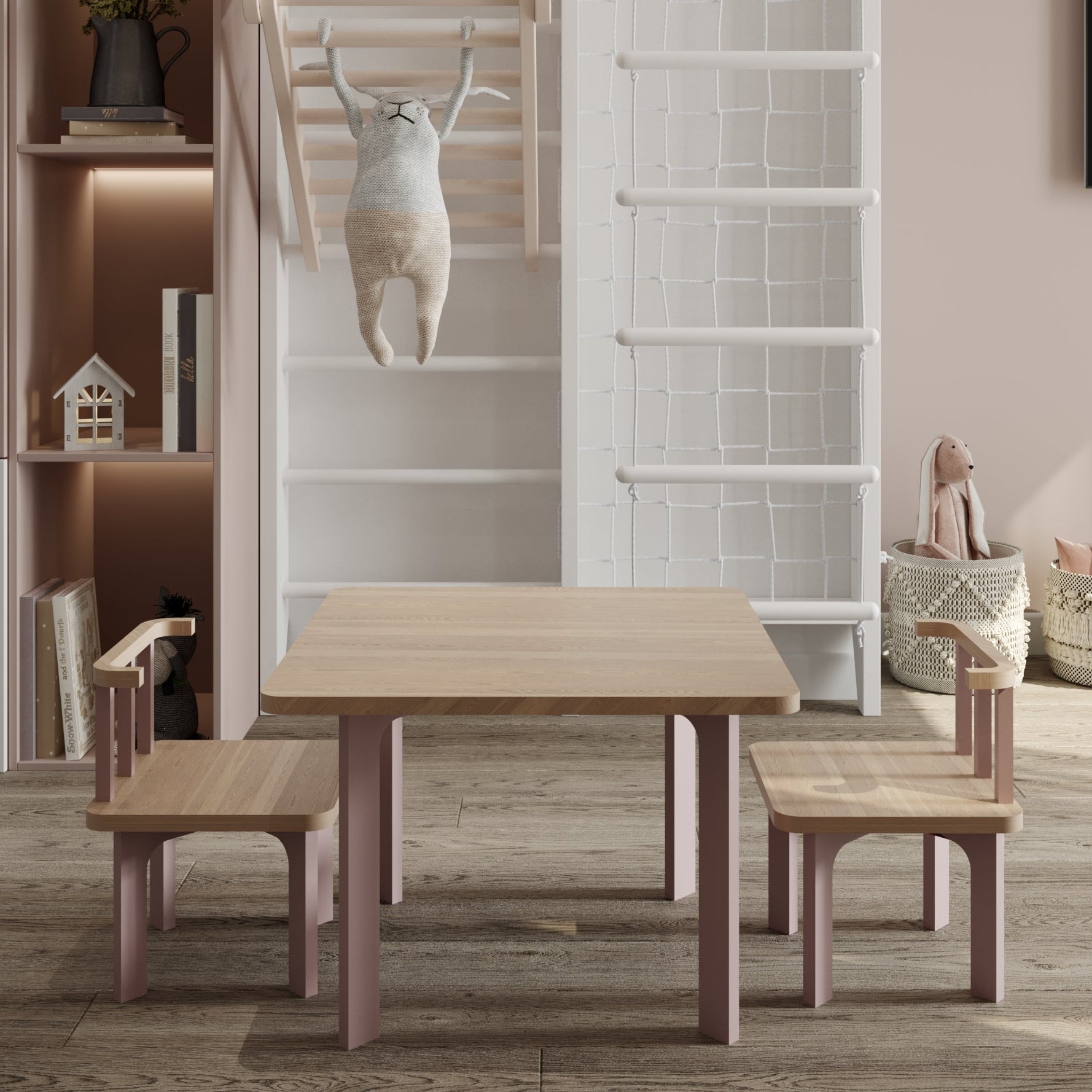 Pure ahşap masa ve sandalye , çocukların yaratıcılığını desteklemek için özenle tasarlandı. Doğal ahşap yüzeyi, renkli bacaklarıyla zarif bir kontrast oluştururken, modern ve yuvarlak hatlarıyla dikkat çeker. Şıklığı ve dayanıklılığı bir araya getiren bu set, küçüklerin oyun ve öğrenme alanlarına renk katıyor, tasarımı güvenliği artırırken, hafif yapısı kolay taşınabilirlik sağlar. Dengeli ayaklar, istikrarlı bir yüzey sunarak uzun süreli kullanım için idealdir.